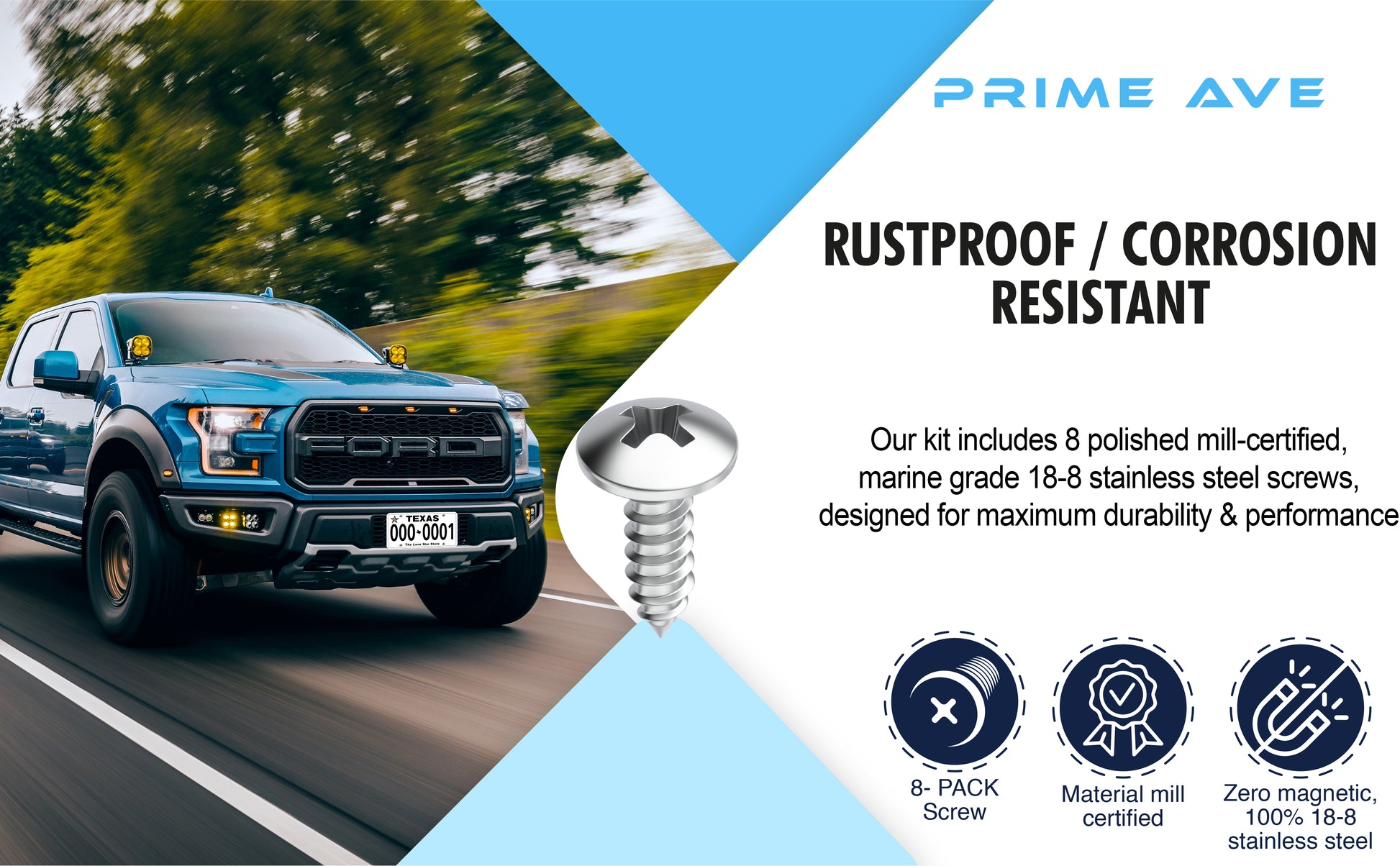 Prime Ave Stainless Steel License Plate Screws Compatible with Ford Lincoln (Pack of 8)